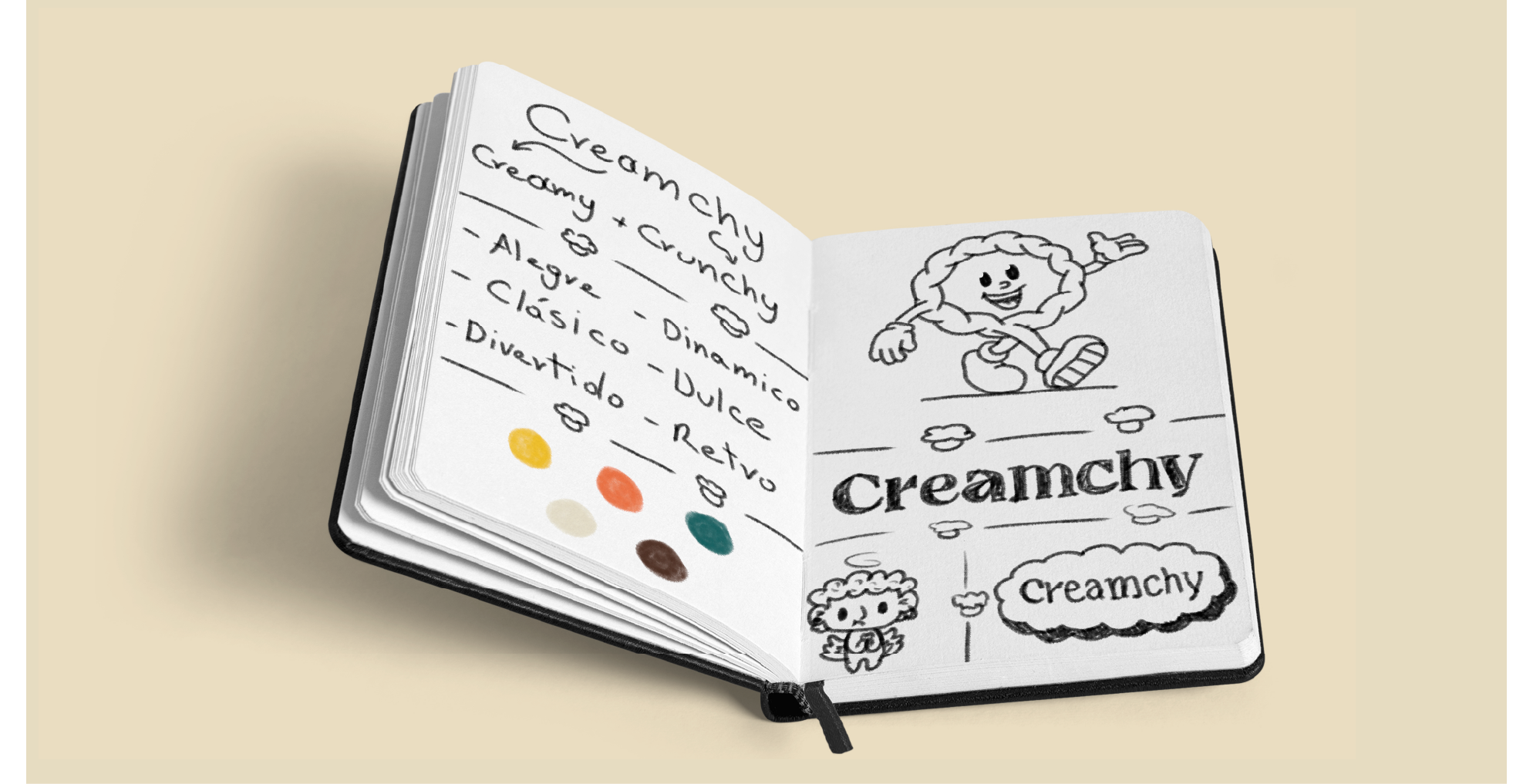 El proceso inició con una investigación visual centrada en la estética retro e ilustrada, definiendo una paleta de colores suaves y un estilo gráfico cálido. A partir de esta base se desarrolló el logotipo, personajes y elementos visuales que acompañan tanto la identidad como el empaque. La solución final combina ilustración y diseño funcional, logrando un packaging que transmite ternura y personalidad. Como resultado, Creamchy se consolidó como una marca dulce, cercana y memorable, capaz de transformar lo cotidiano en una experiencia emocional. La reflexión principal del proyecto fue reconocer el poder del diseño para conectar sensorial y afectivamente con las personas, convirtiendo cada detalle visual en parte del sabor de la marca.